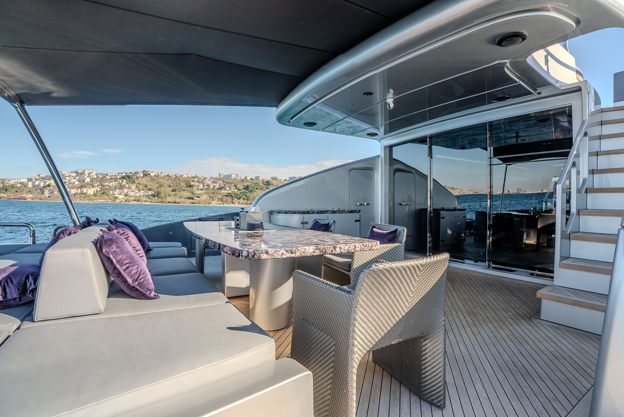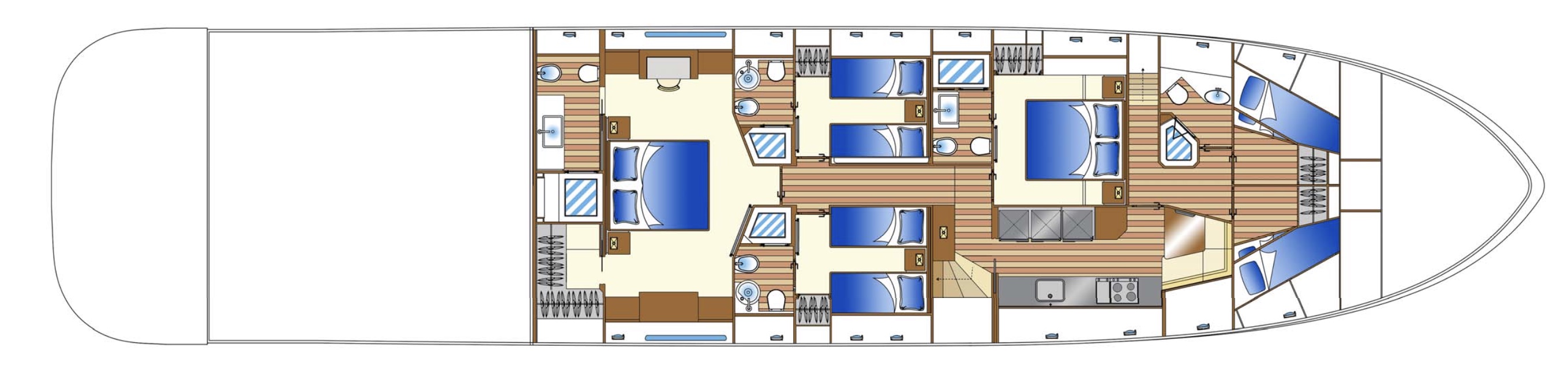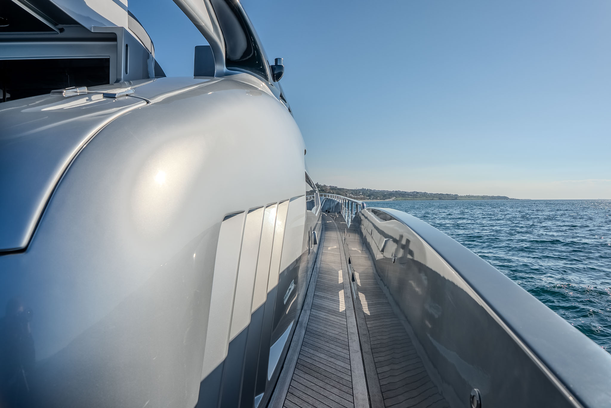 AB 100 «SPECTRE»- это высокоскоростная моторная яхта категории CE A, созданная для уверенного хода в сложных морских условиях и длительных переходов. Корпус выполнен из стеклопластика и кевлара с усилением Aramat и винилэфирными смолами, а надстройка — из композитов с добавлением углеволокна, что обеспечивает прочность, лёгкость и устойчивость конструкции.