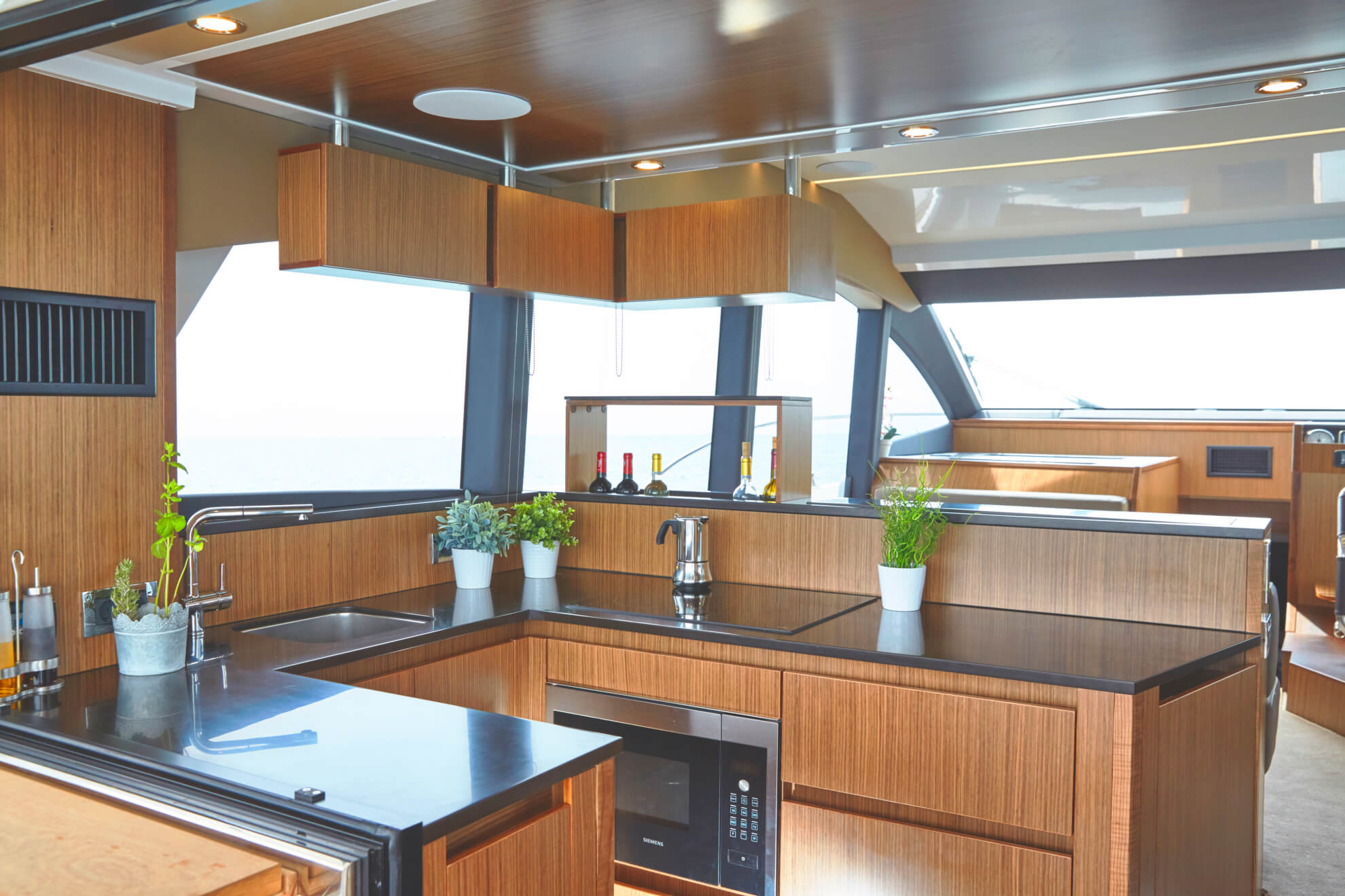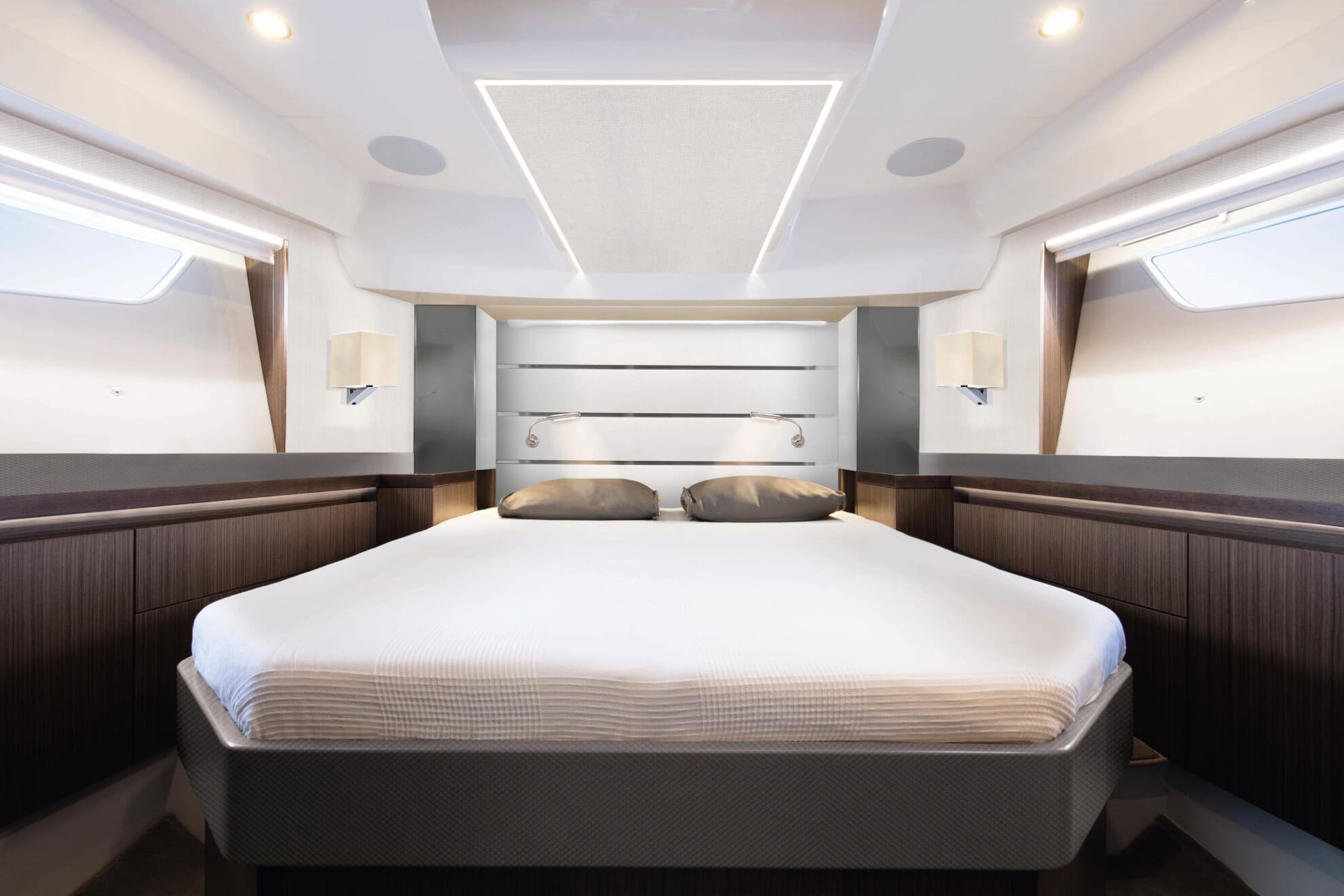 Sealine F530 оснащена длинным открытым мостиком и не имеет себе равных в этом классе яхт. Харизматичные очертания и стильные окна корпуса в духе Sealine дополняют незабываемый дизайн экстерьера яхты. А идеальным дополнением к нему служит открытый мостик. Просторность, вариативность в выборе места для расположения экипажа и ветбар на свежем воздухе с грилем и холодильником превращают его в настоящий центр отдыха. Эта яхта роскошна во всем — будь то кокпит, палуба для солнечных ванн на носу или просторный салон. В распоряжении ваших гостей также просторные фешенебельные двойные каюты и две ванные комнаты. Апартаменты владельца простираются по всей длине корпуса в центре судна. Дизайн интерьера подчеркивают такие изысканные детали, как, например, шезлонги у окон, изготовленные вручную из тщательно подобранных материалов. На корме вы можете расположить каюту для членов команды с доступом снаружи или кладовую.