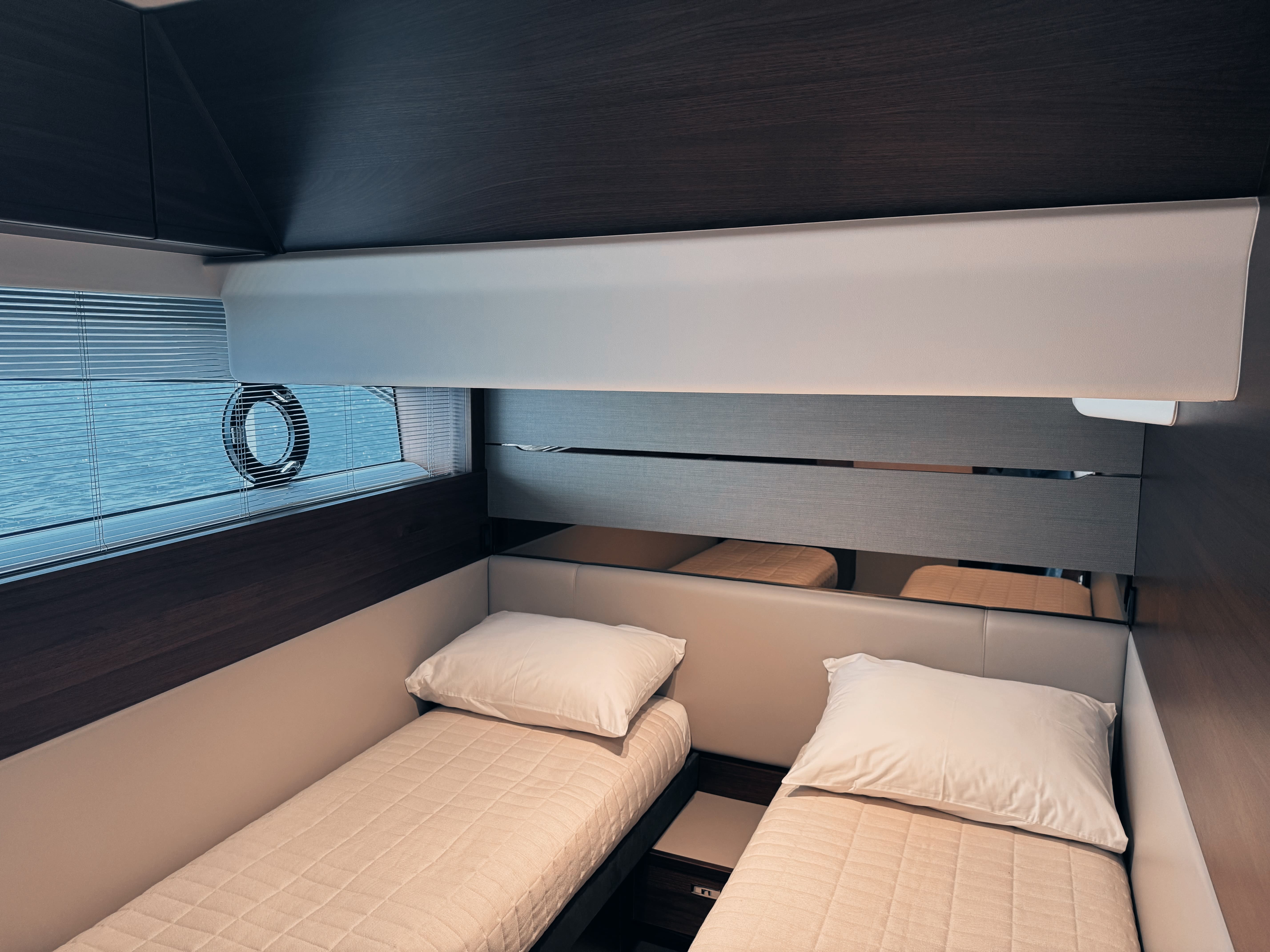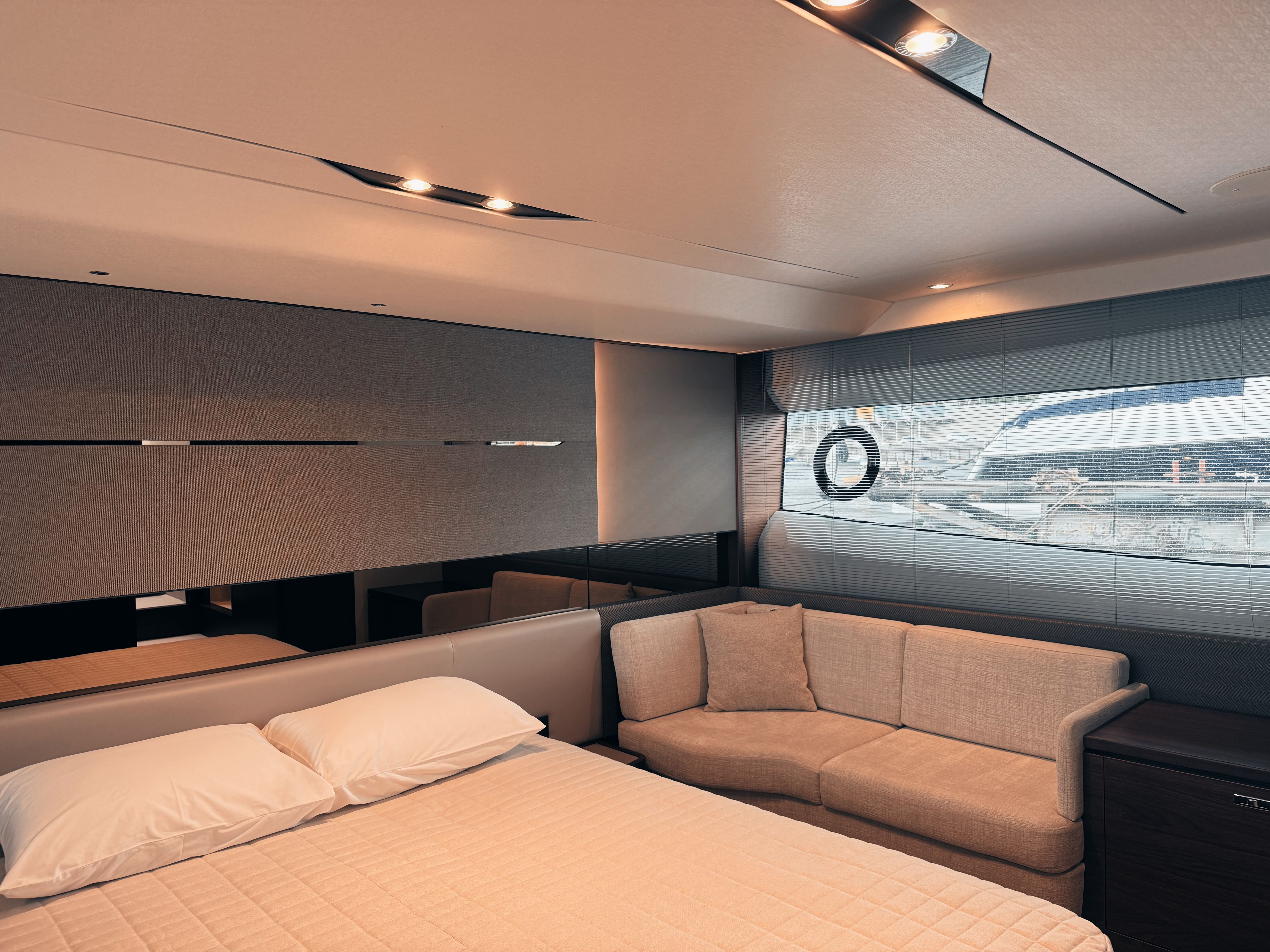 Princess V60 — это спортивная моторная яхта, сочетающая элегантный дизайн, высокую производительность и исключительный комфорт. Просторная палуба идеально подходит для отдыха и развлечений на воде, а современный интерьер выполнен из высококачественных материалов с вниманием к каждой детали. Мощные двигатели обеспечивают впечатляющую скорость и уверенное управление даже на большой скорости. Princess V60 — идеальный выбор для тех, кто ценит стиль, комфорт и динамику морских путешествий.