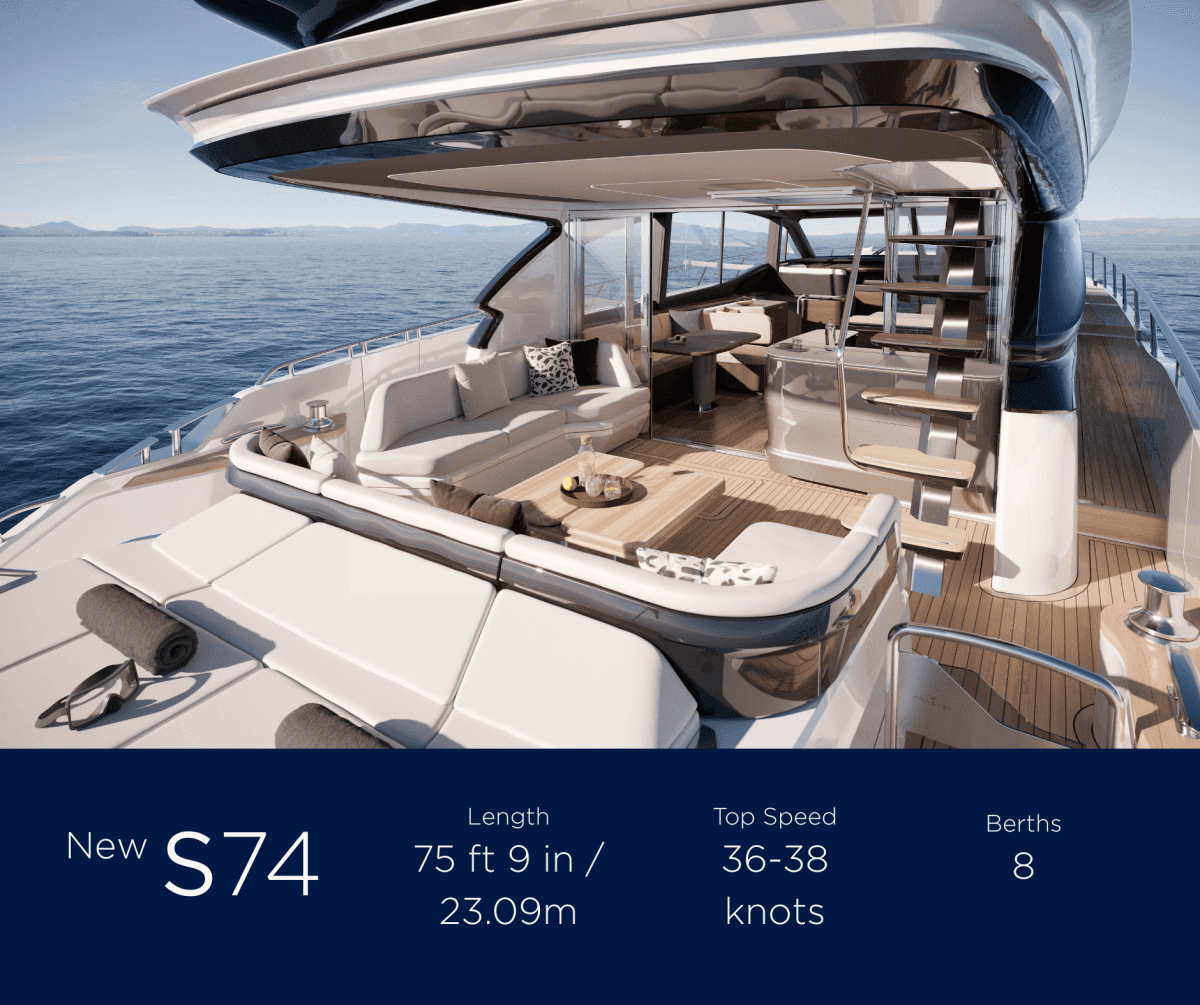 А также компания поделилась первыми подробностями о впечатляющей новой яхте Princess S74, которая поступит в продажу в 2027 году. Яхта является улучшенной версией модели Princess S72, это новое воплощение спортивной роскоши, с обновленной эстетикой интерьера и улучшенными зонами отдыха на открытой палубе.
