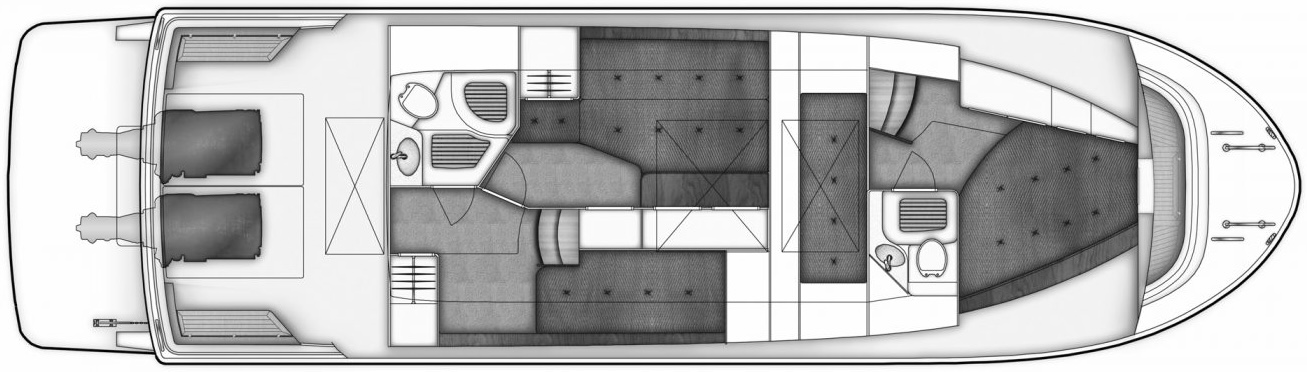 В продаже моторная яхта Targa 44 2011 года выпуска с дизельными двигателями Volvo Penta по 370 л.с.